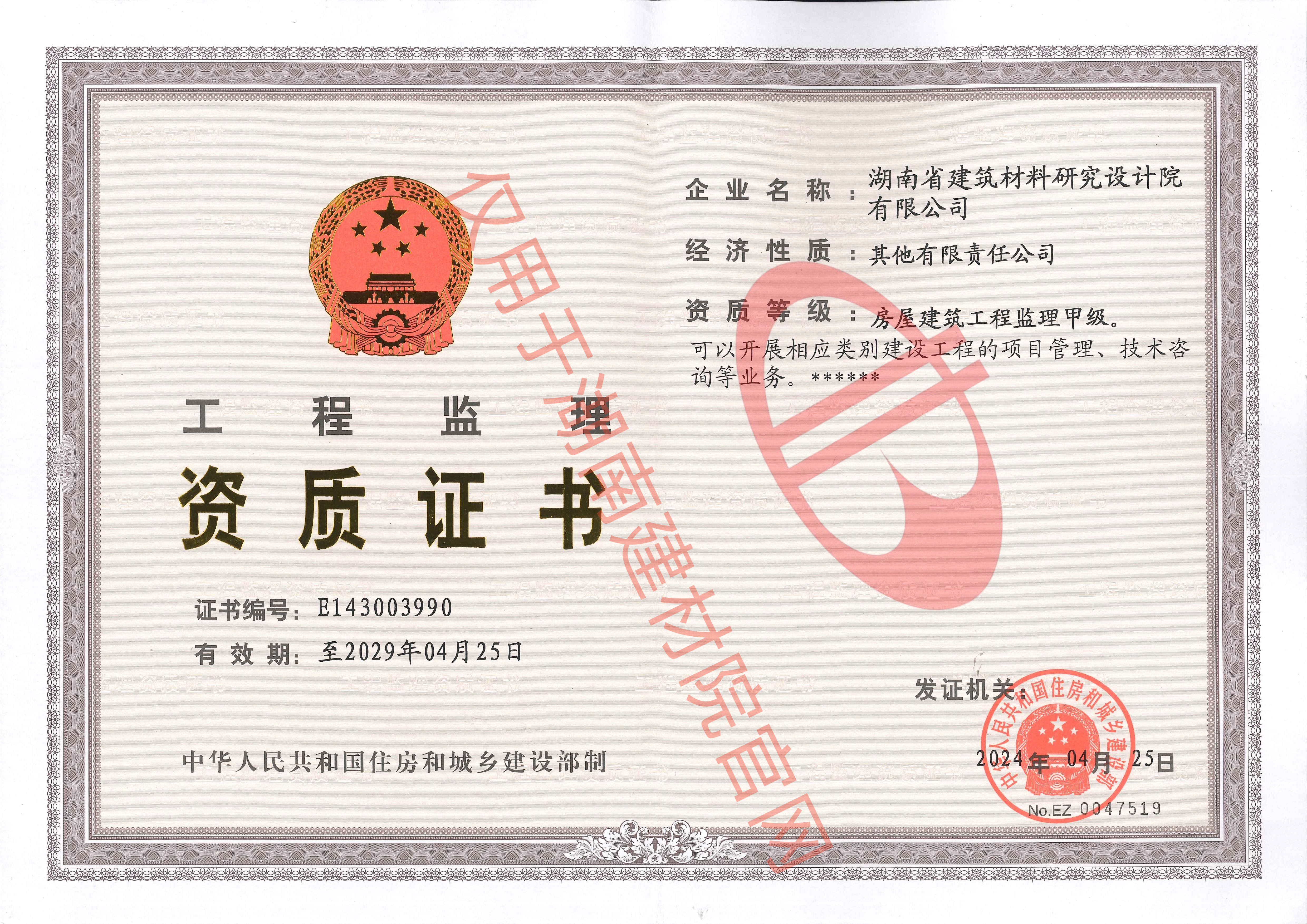 房屋建筑工程監理甲級